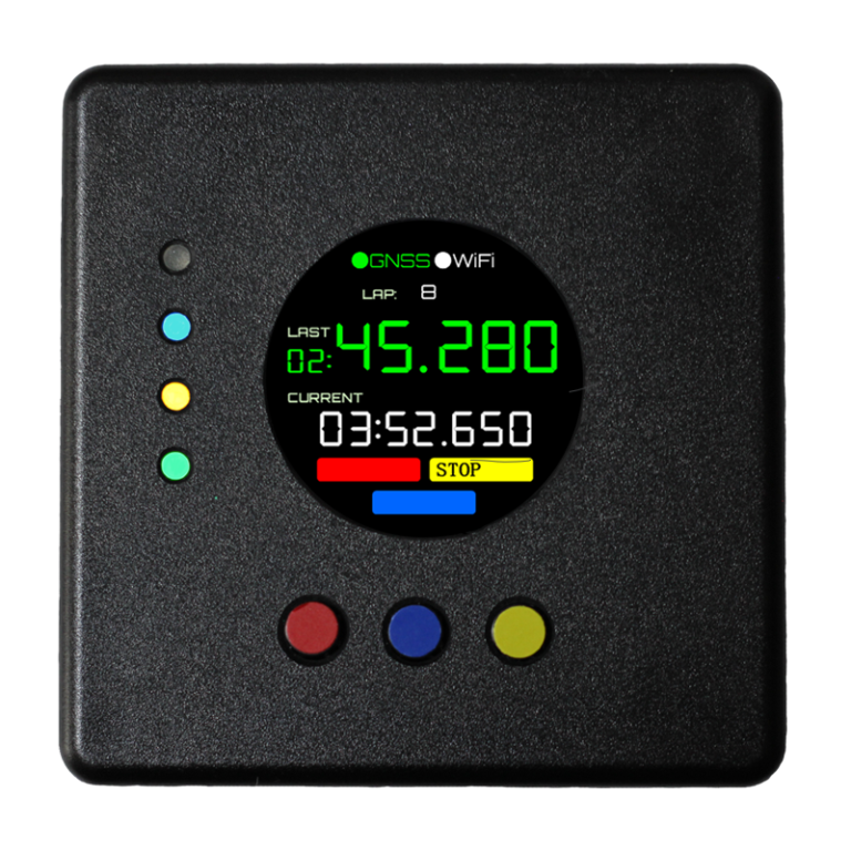 液晶画面には、GPSの測位情報やラップタイムの計測情報をリアルタイムに表示。